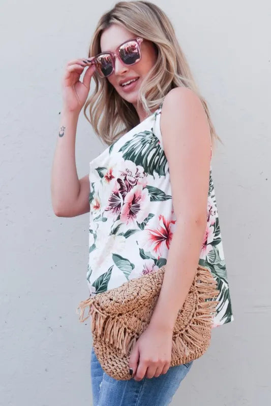 Zenana Ribbed Ruffle Trim Sleeveless Stripe Top