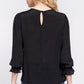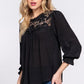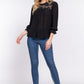 Black Lace ACTIVE BASIC Crochet Lace Panel Flounce Sleeve Blouse