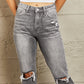 BAYEAS Stone Wash Distressed Cropped Straight Jeans
