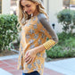 Embrace the striking fusion of stars filled with leopard patterns that add a distinct flair to your wardrobe. The clever color contrast on the sides of the sleeves creates a slimming effect for your arms, and the striped cuffed sleeves with buttons add an extra touch of style to this fun top.