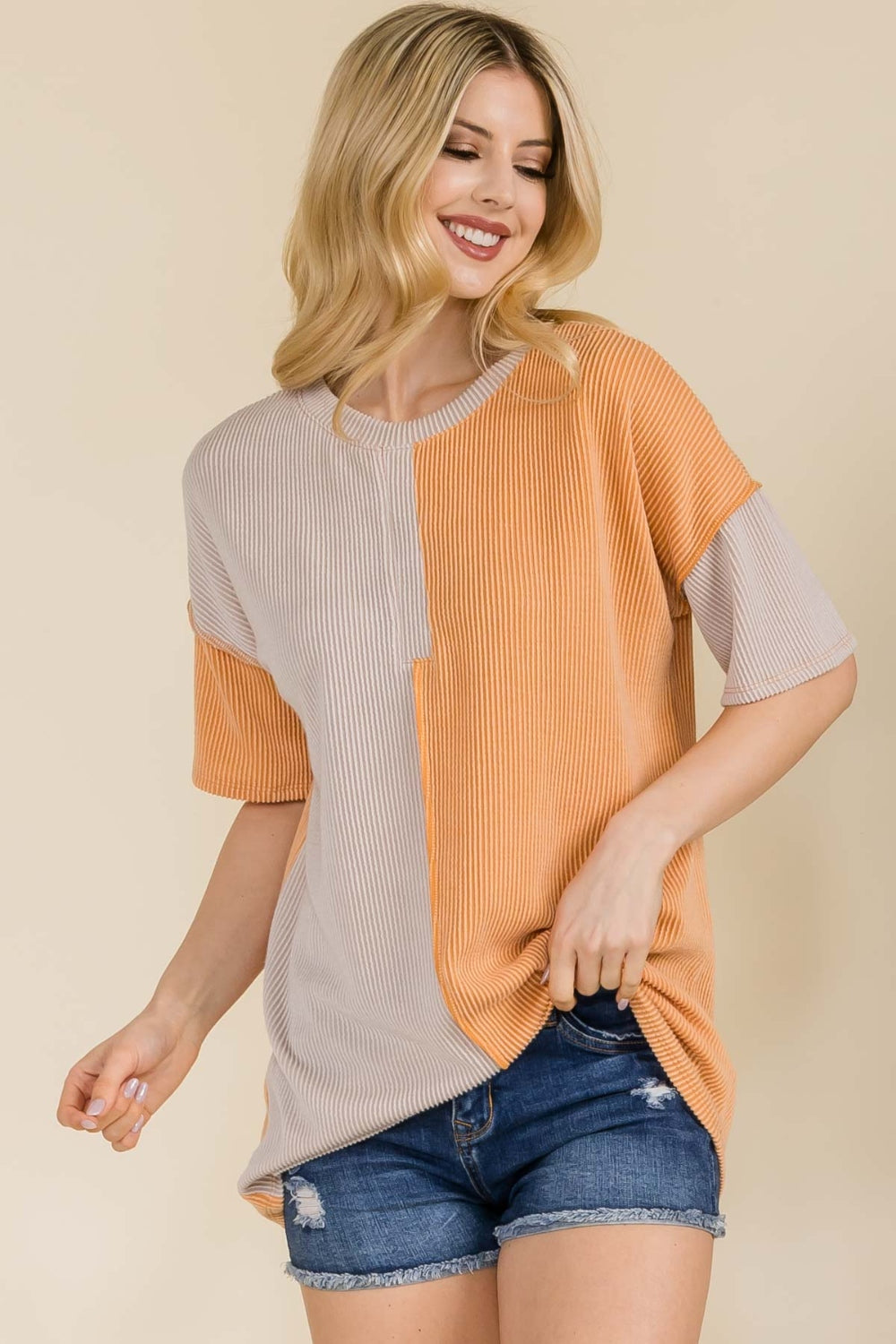 Celeste Full Size Ribbed Color Block Short Sleeve T-Shirt