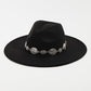 This metal trim flat brim fedora hat is a sleek and modern accessory that adds a touch of sophistication to any outfit. The metal trim detail gives it a contemporary and edgy feel, perfect for elevating your look. With its flat brim design, this hat is versatile and on-trend, making it a stylish addition to your hat collection. Make a fashion statement with this chic metal trim flat brim fedora hat, ideal for adding a touch of urban flair to your ensemble.