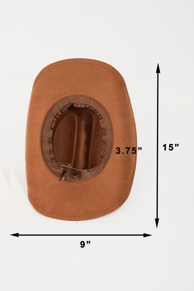 This cowboy hat introduces a stunning solid-colored western style. Elevate your ensemble with this chic, timeless accessory.Adjustable inner string, Faux suede is a synthetic fabric typically 100% polyester made to resemble genuine suede that is produced from a cow hide.