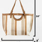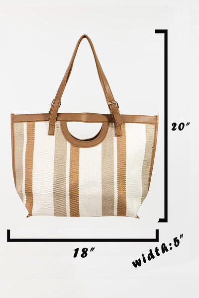 The Striped PU Leather Trim Tote Bag is a stylish and versatile accessory that combines classic stripes with a modern touch. This tote bag features a sleek PU leather trim that adds a sophisticated flair to the striped design. The contrasting textures create a chic and dynamic look, perfect for elevating your ensemble. With its spacious interior and durable construction, this tote bag is both fashionable and functional. Whether you're heading to work or running errands, this bag is a perfect blend of style and practicality. Make a statement with the Striped PU Leather Trim Tote Bag, a trendy and eye-catching accessory for any occasion.