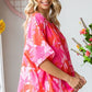 First Love Slit Printed Round Neck Half Sleeve Blouse