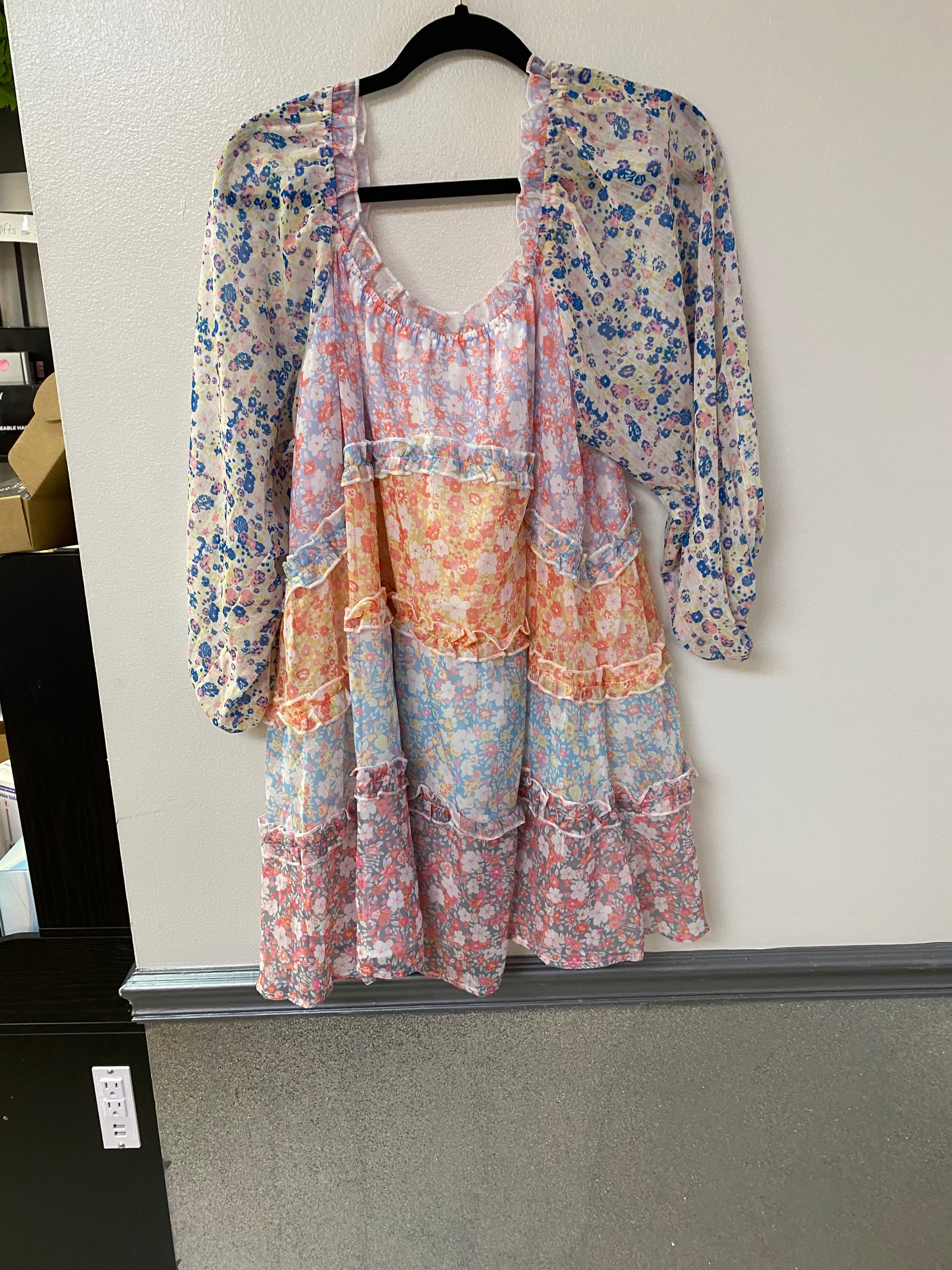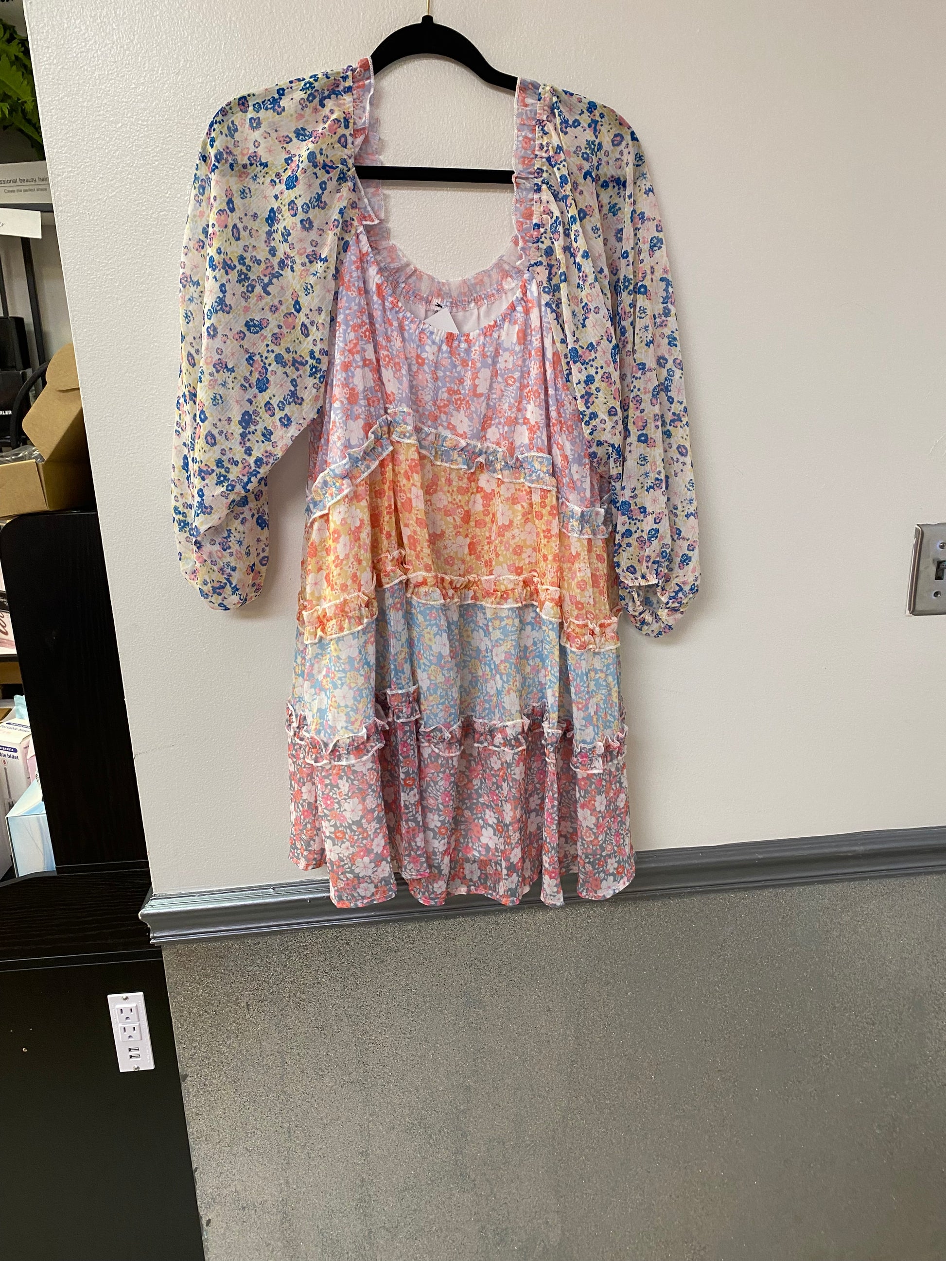 Embrace elegance with this floral multicolor tiered dress. Perfect for any occasion, it features a blend of pink, orange, and blue hues. The lightweight fabric and stylish design ensure comfort and sophistication.