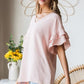 Butterfly Kisses Heimish Full Size Swiss Dot Ruffle Short Sleeve Top