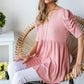 Heimish Full Size Waffle Knit V-Neck Babydoll Top