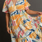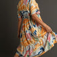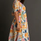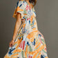 Umgee Full Size Abstract Print Flutter Sleeve Frill Tiered Midi Dress Plus Size