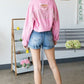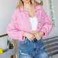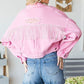 This fringe distressed button-up denim jacket is a statement-making piece for your wardrobe. The fringe detailing adds a bohemian touch, while the distressed finish brings a worn-in, vintage vibe. The button-up front adds a touch of utility style and allows for multiple styling options. Pair it with jeans or a skirt for a trendy and edgy look, or throw it over a dress for a contrasting mix of feminine and rugged style. This denim jacket is a must-have for adding a unique and eye-catching element to your outfits.