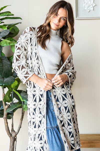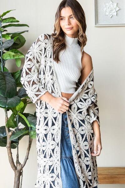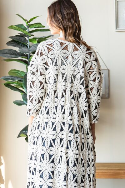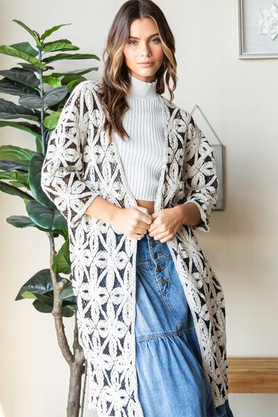 Veveret Geometric Open Front Three-Quarter Sleeve Cardigan